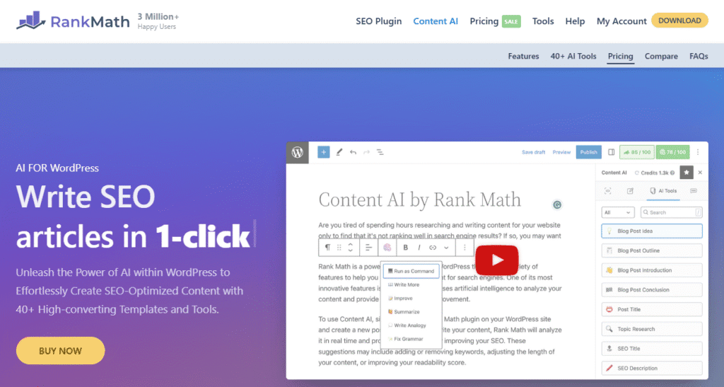 - SEO optimization → AI plugins analyze your content and suggest keywords, headings, and even titles to help you rank higher in Google.